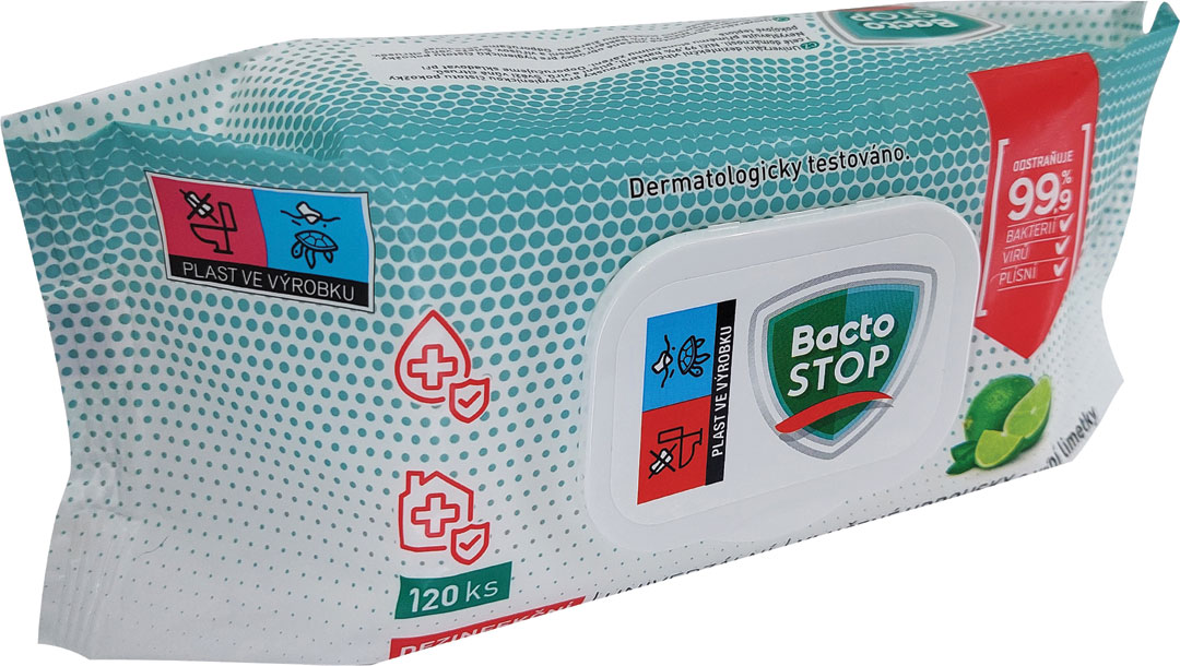Dezinfekčné vlhčené utierky BactoSTOP majú praktické uzatváranie, univerzálne použitie a baktericídny a fungicídny účinok.