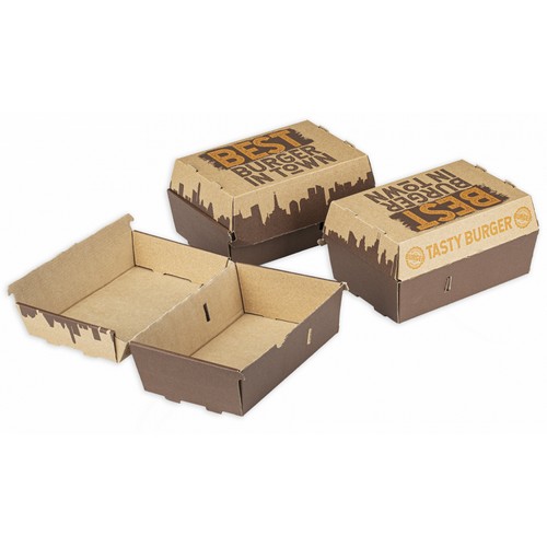 Kompostovateľná eko krabička na hamburger je ideálna na rozvoz jedla. Krabička poskytuje pohodlnú konzumáciu jedla vďaka možnosti odstránenia viečka. Je vyrobená z bio papiera.