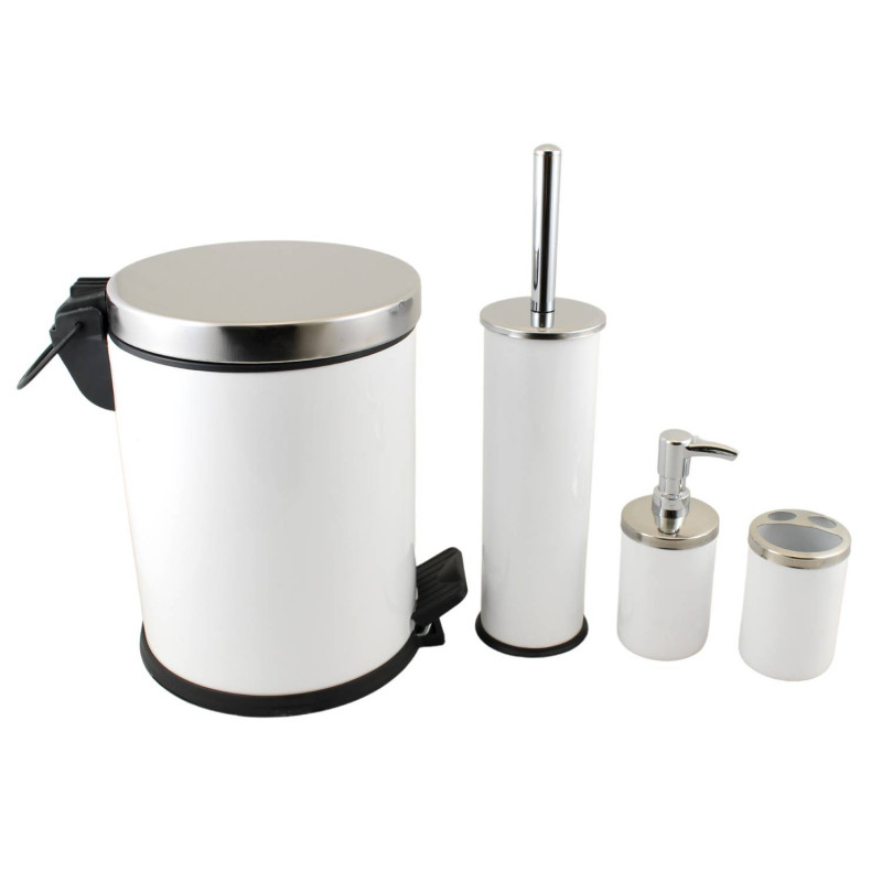Kúpeľňová sada 4-dielna biela Dodajte svojej kúpeľni nový rozmer elegancie s našou kompletnou kúpeľňovou súpravou, ktorá pozostáva zo štyroch základných kusov. Táto súprava, navrhnutá s ohľadom na funkčnosť a štýl, vám nielen uľahčí každodenné úlohy, ale aj skrášli vašu kúpeľňu. Kúpeľňová sada je z nehrdzavejúcej ocele s povrchovou úpravou. Súprava obsahuje: Držiak na zubné kefky – dokonalé riešenie na hygienické uloženie zubných kefiek a udržiavanie čistoty v miestnosti. Dávkovač mydla – praktický a estetický spôsob uskladnenia tekutého mydla, ktoré sa ľahko a čisto dávkuje. Toaletná kefa – základný predmet na toaletu alebo kúpeľne, ktorý nielenže plní svoj účel, ale aj vyzerá štýlovo a elegantne. Kôš na odpadkový papier 5l – diskrétny, ale funkčný, pre čistú a upratanú kúpeľňu. Každá položka v tejto súprave bola starostlivo navrhnutá tak, aby vyhovovala rôznym štýlom kúpeľne. Vysokokvalitné materiály zaručujú odolnosť a jednoduchú údržbu. Vneste do svojej kúpeľne harmóniu a spojte funkčnosť a estetiku s touto kompletnou súpravou, ktorá uspokojí vaše každodenné potreby a ešte viac vylepší vašu kúpeľňu. Cena je za 4-dielnu sadu.
