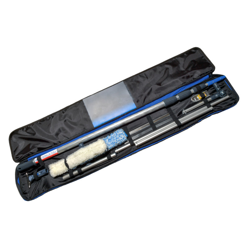 LEWI Set na umývanie zimných záhrad Súprava pomôcok na údržbu zimných záhrad v praktickej umývateľnej taške. Set obsahuje: Držiak rozmývača ALU 35 cm Návlek rozmývača štandard 35cm Návlek rozmývača modrá zebra 35 cm Stierka okenná profi komplet 35 cm Guma náhradná do okennej stierky 35cm Teleskopická tyč 4x100cm Kĺb pre teleskopickú tyč-umožní nastavenie pomôcok v rôznom uhle Škrabka bezpečnostná 4cm + náhradné čepele v sade 5ks