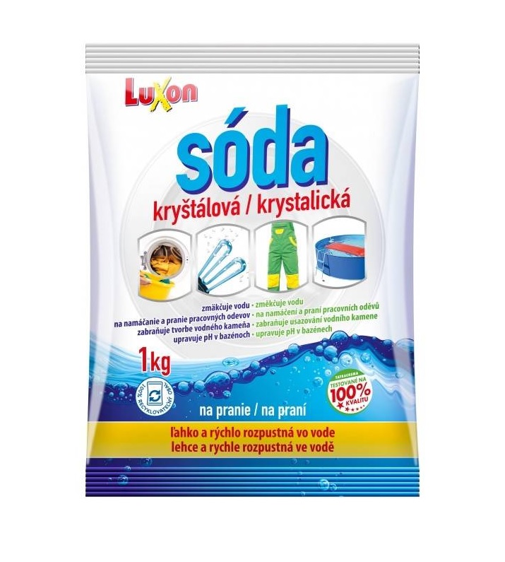 Prostriedok na zmäkčovanie vody; Na namáčanie silne znečistených odevov (pracovné odevy, montérky); Vhodná do automatických práčok; Zvyšuje účinnosť pracieho prášku; Zabraňuje usadeniu vodného kameňa; Balenie: 1 kg