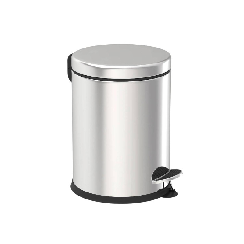 Odpadkový kôš s pedálom nerez 20L Kôš má vyberateľnú vnútornú čiernu plastovú nádobu. Otváranie koša je ovládané nožným pedálom. Dno nádoby je chránené plastovým podstavcom, ktorý nekoroduje a chráni podlahu proti poškriabaniu. V zadnej časti koša je sklopná manipulačná rukoväť. Výška koša: 45cm Priemer koša: 29cm Cena je za 1ks