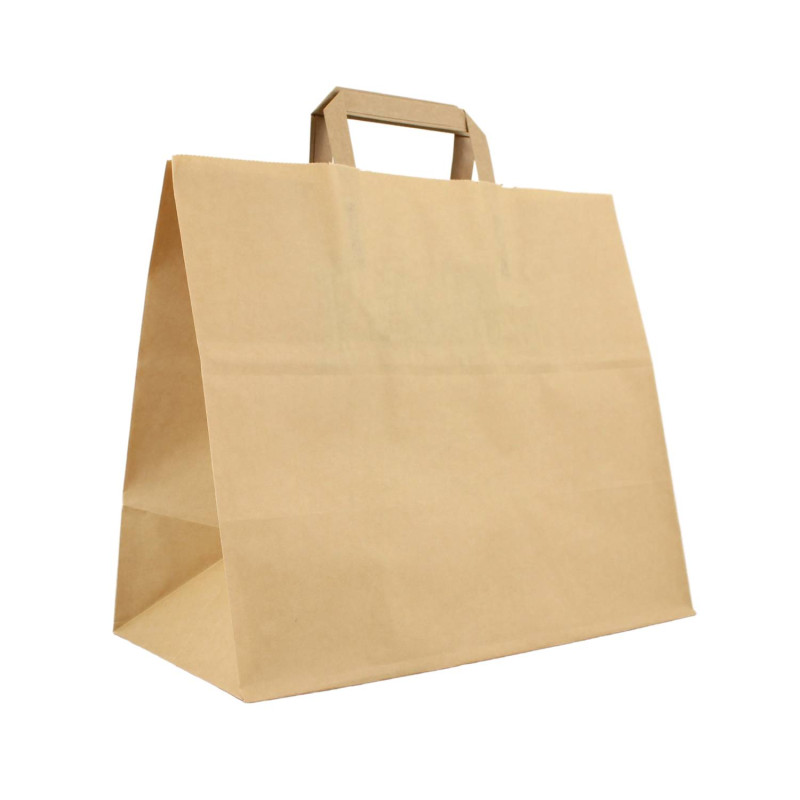 Papierová taška hnedá s papierovým uchom 32x21x33cm – 50ks vhodná pre univerzálne použitie papierové ucho matný kraftový papier vhodné pre vlastnú potlač dodávame v zloženom stave Balenie: 50 ks Výška: 330 mm Farba: hnedá Potlač: bez potlače Materiál: kraftový papier 80g/m2 Šírka: 210 mm Dĺžka: 320 mm Cena je za bal./50ks