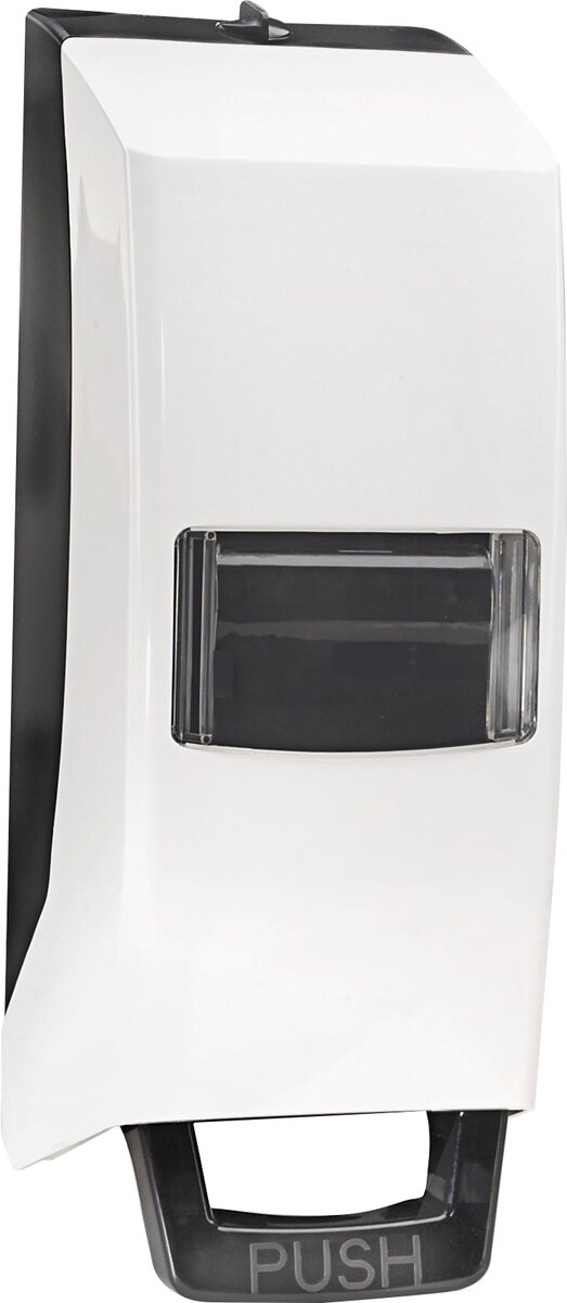 Ekonomický dávkovač; Hygienický, nedochádza ku kontaktu vďaka uzavretému systému; Vhodný na 1 L a 2 L náplne; Materiál: plast; Farba: biela; Balenie: 1 ks