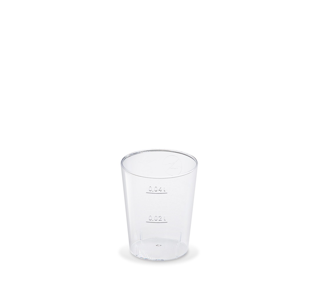 Objem: 20 ml/40 ml; Priemer: 43 mm; Materiál: PS; Farba: transparentná; Balenie: 50 ks
