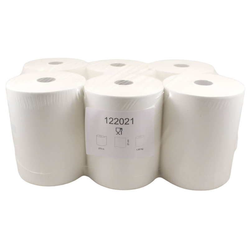122021 – Utierka CELLART PlusMatic Soft 280, 270m (6ks) Papierové utierky PlusMatic  sú veľmi kvalitné a extra jemné. Utierky sú vyrobené zo 100 % celulózy, na dotyk veľmi príjemné a veľmi dobre savé. Utierka funguje oveľa lepšie v porovnaní s viacvrstvovými uterákmi, ktoré obsahujú lepiacu vrstvu, ktorá znižuje nasiakavosť a robí utierku tvrdou a môže nadmerne zaťažovať zásobník. Nízka prašnosť a  mechanická pevnosť ovplyvňujú optimalizáciu spotreby utierok. Dlhý kotúč umožňuje výrazne znížiť frekvenciu výmeny utierok v zásobníku. Utierka perfektne funguje s väčšinou automatických dávkovačov obľúbených značiek. Kompatibilná utierka aj do systémových zásobníkov TORK Tento produkt je certifikovaný a  bezpečný na použitie na miestach spracovania a prípravy potravín. Dutinka: 3,8 cm Počet vrstiev :    jednovrstvové Materiál :            100% celulóza Hmotnosť papiera :        34 g/m2 Hmotnosť kotúča :          1,84 kg  Dĺžka kotúča (m) :            270 Šírka kotúča (mm) :         210 Priemer kotúča (mm) :   190 Počet útržkov (ks) : neperforovaná Cena za balenie  :                            6 ks