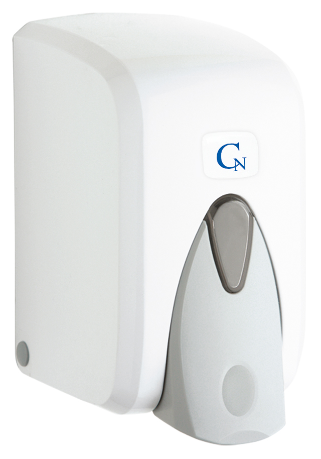 Nástenný dávkovač na tekuté mydlo, obsah zásobníka na dolievanie je 500 ml. Vyrobený je z bieleho ABS plastu s šedivým tlačidlom. Jedna dávka obsahuje cca 0,5 ml mydla, dávkovač pojme cca 1000 dávok mydla.