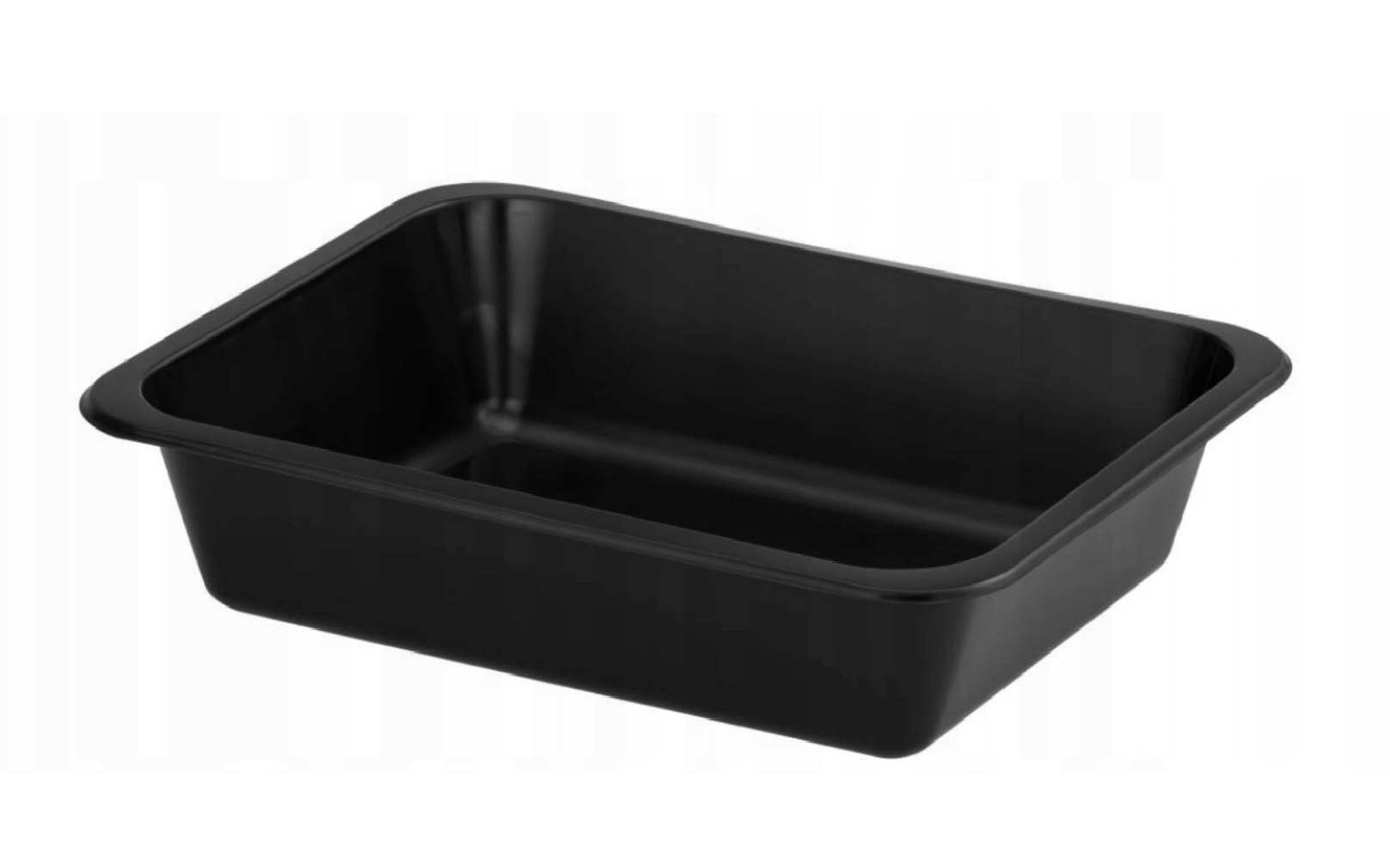 Jednodielna; Objem: 1400 ml; Rozmer: 227 x 178 x 50 mm; Farba: čierna; Materiál: polypropylén; Balenie: 50 ks